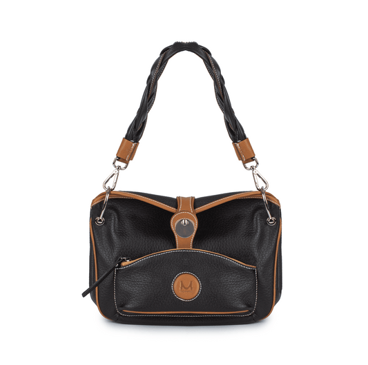 H: 33 cm W: 45 cm D: 11 cm • Shoulder Bag with Braided Handle and Clasp Lock...
