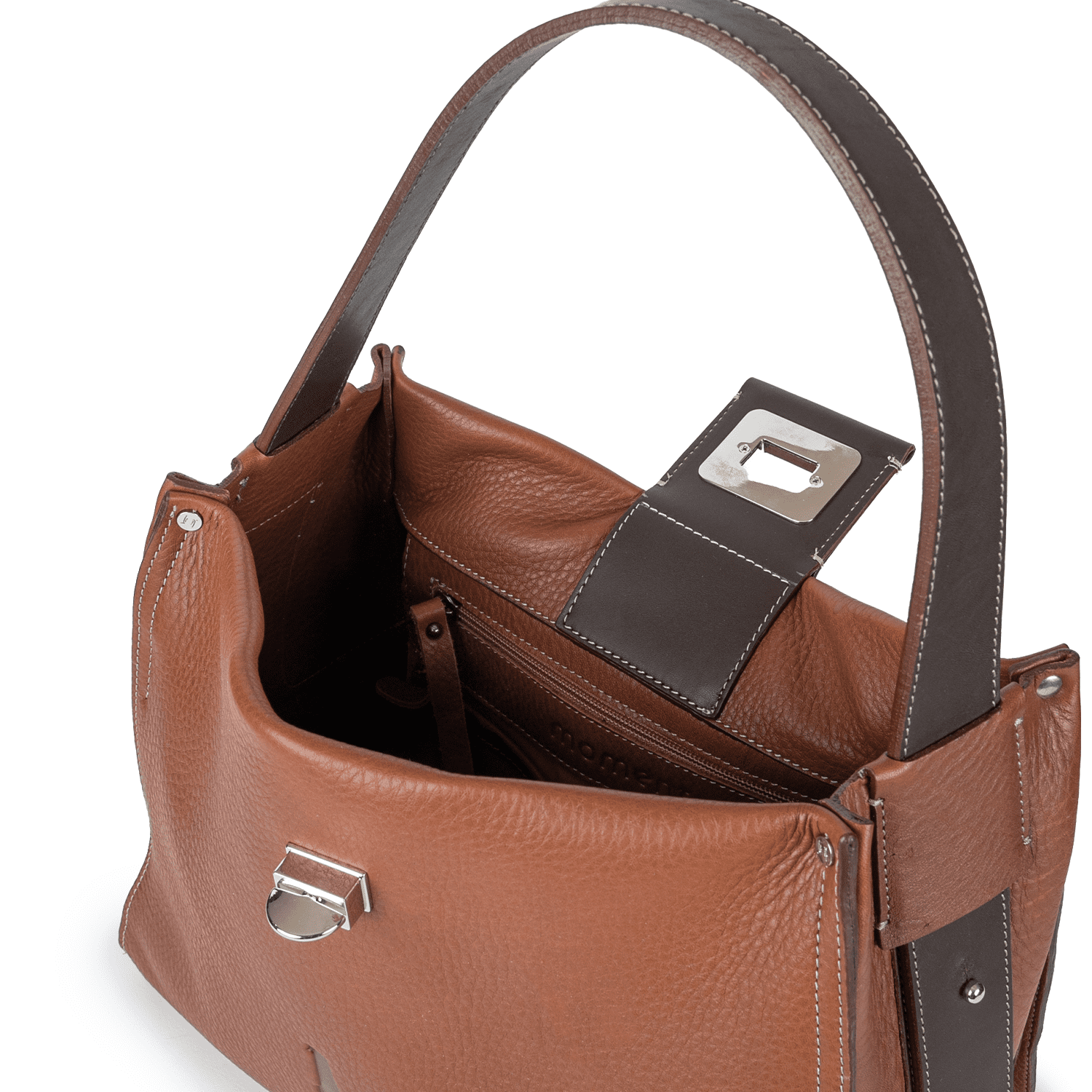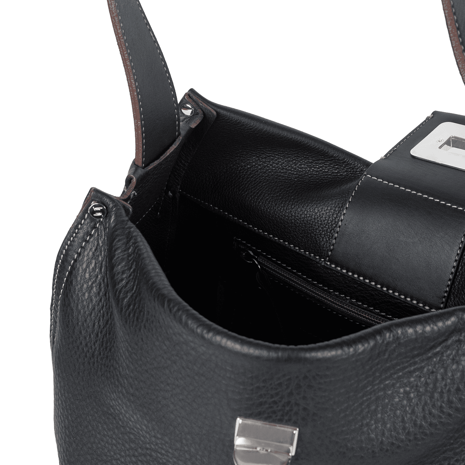 • Shoulder bag with metal clasp and contrast stitch