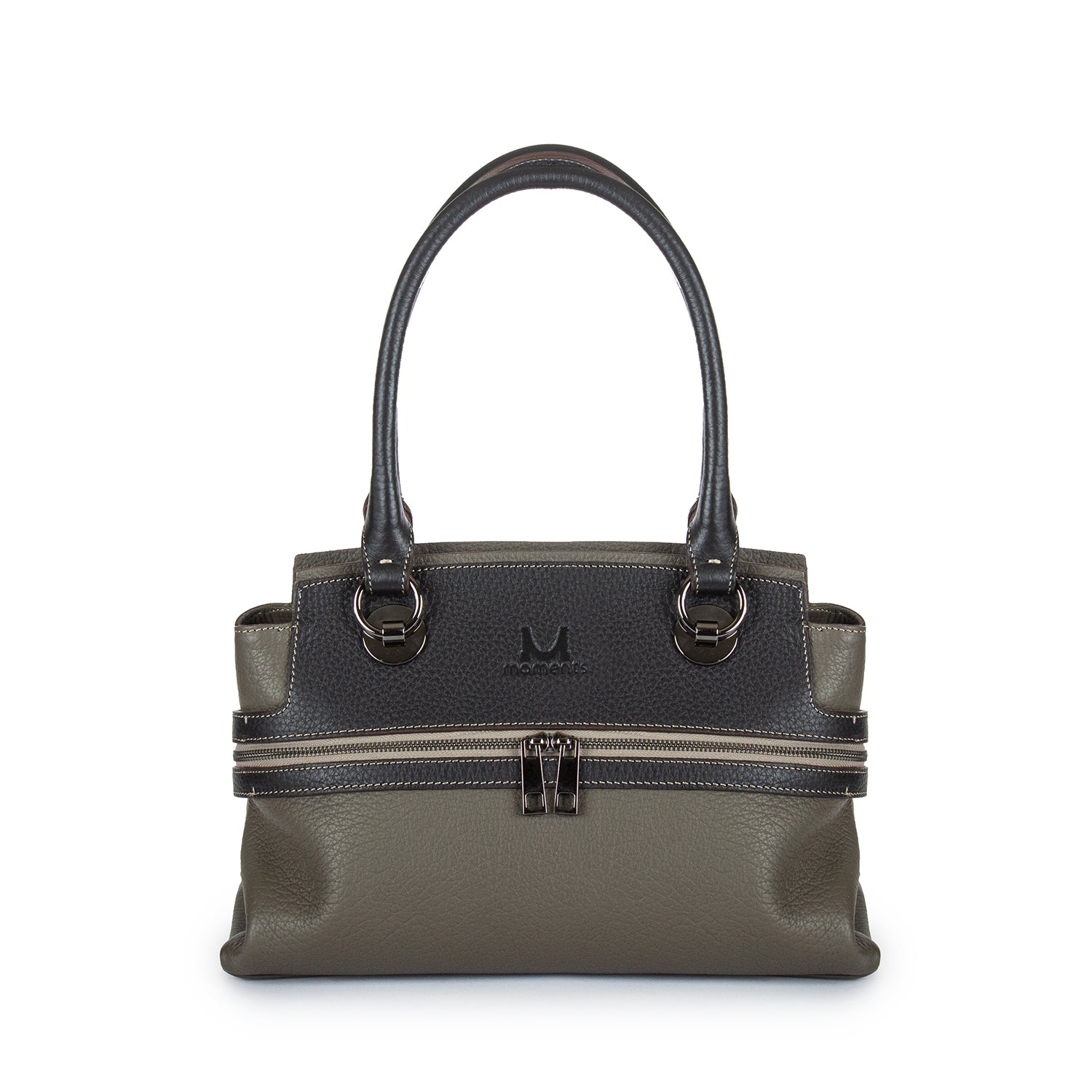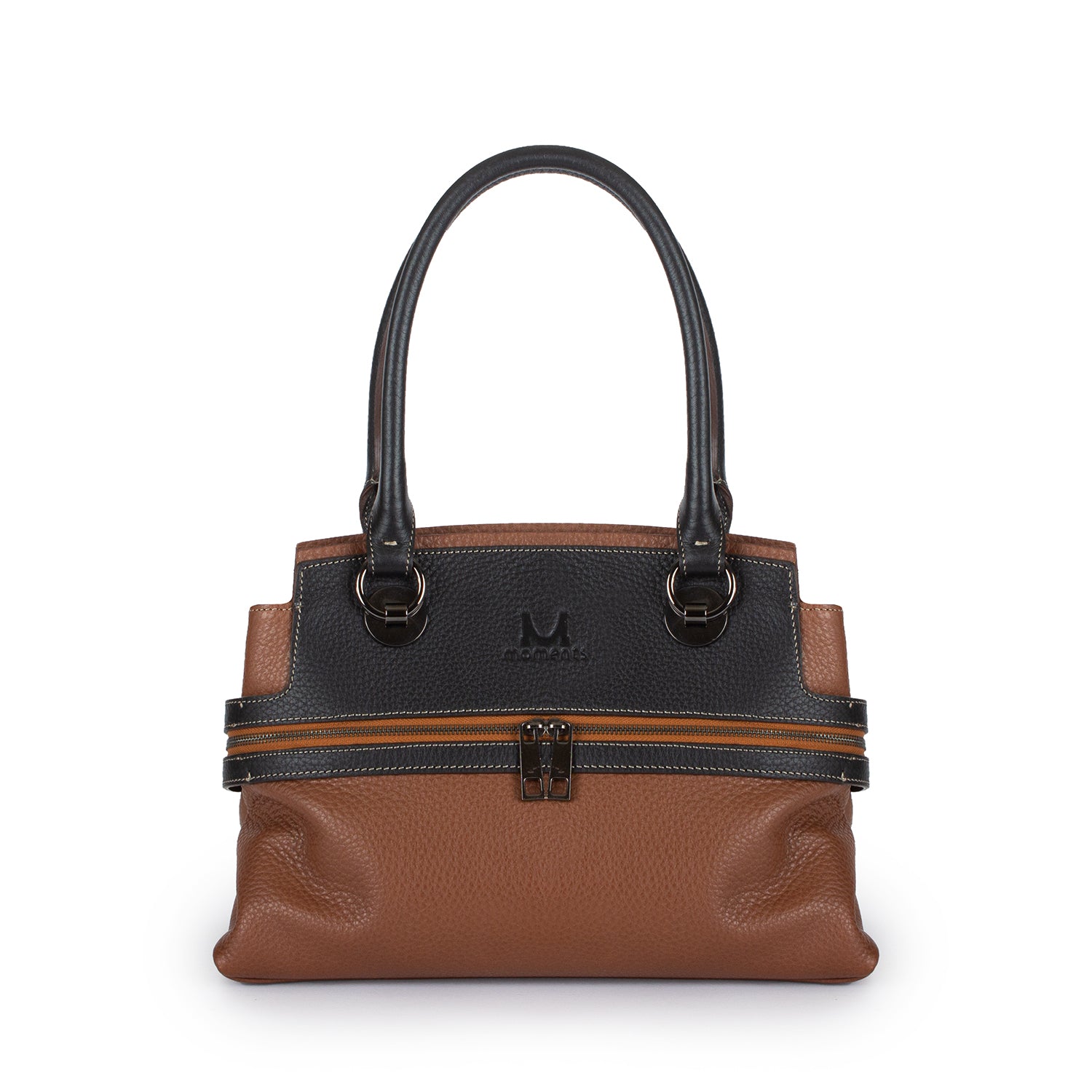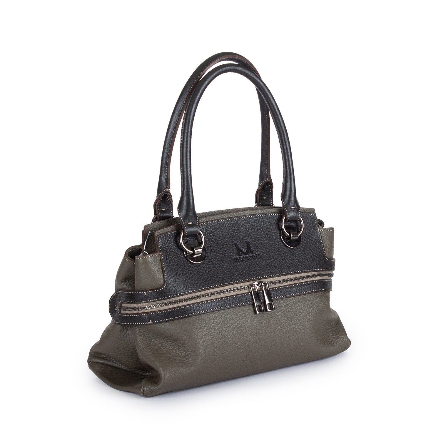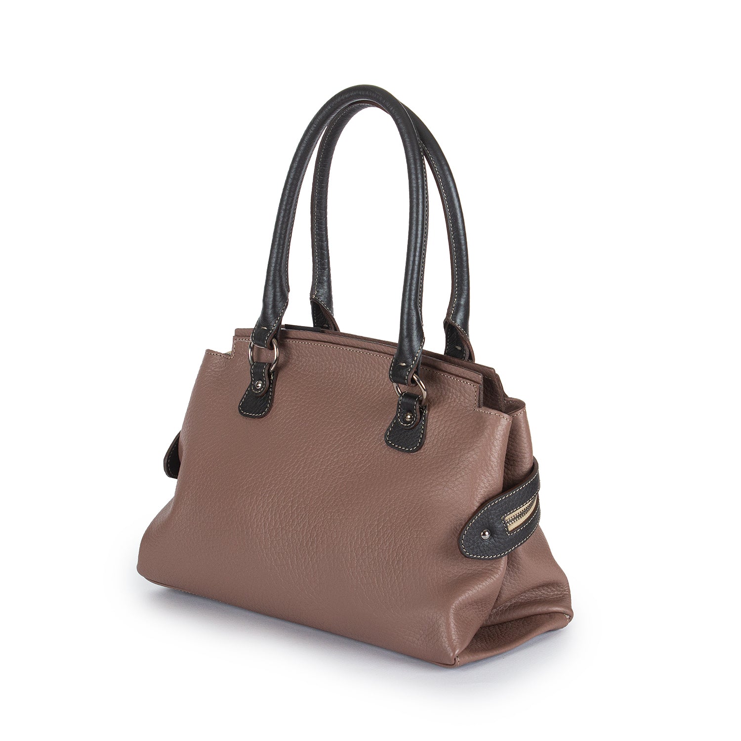 2747 Double-handle Leather Tote with Front Zip