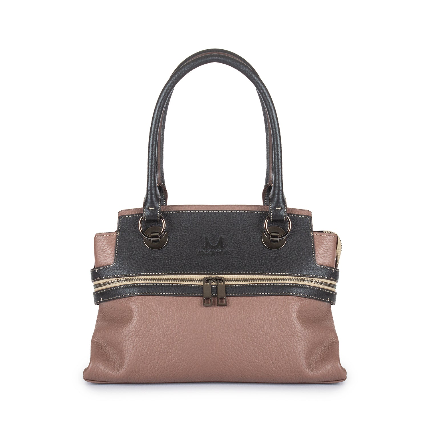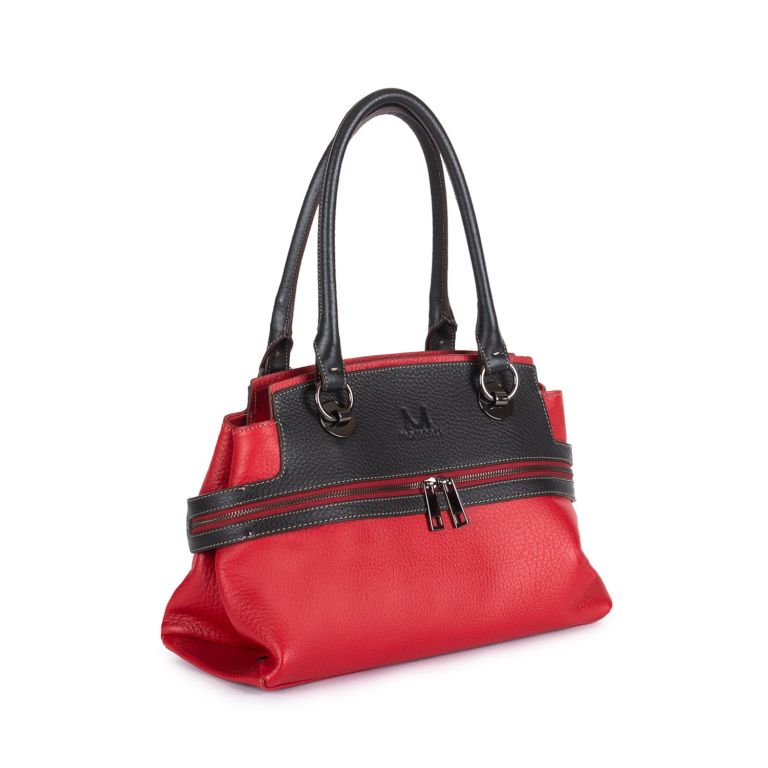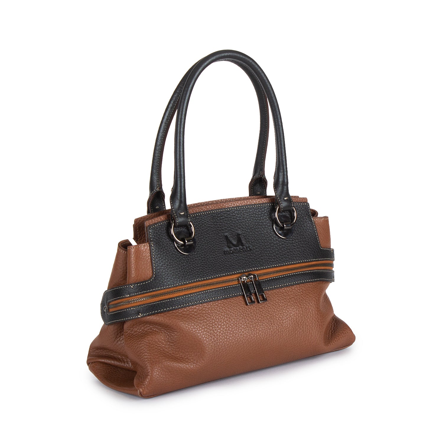 2747 Double-handle Leather Tote with Front Zip
