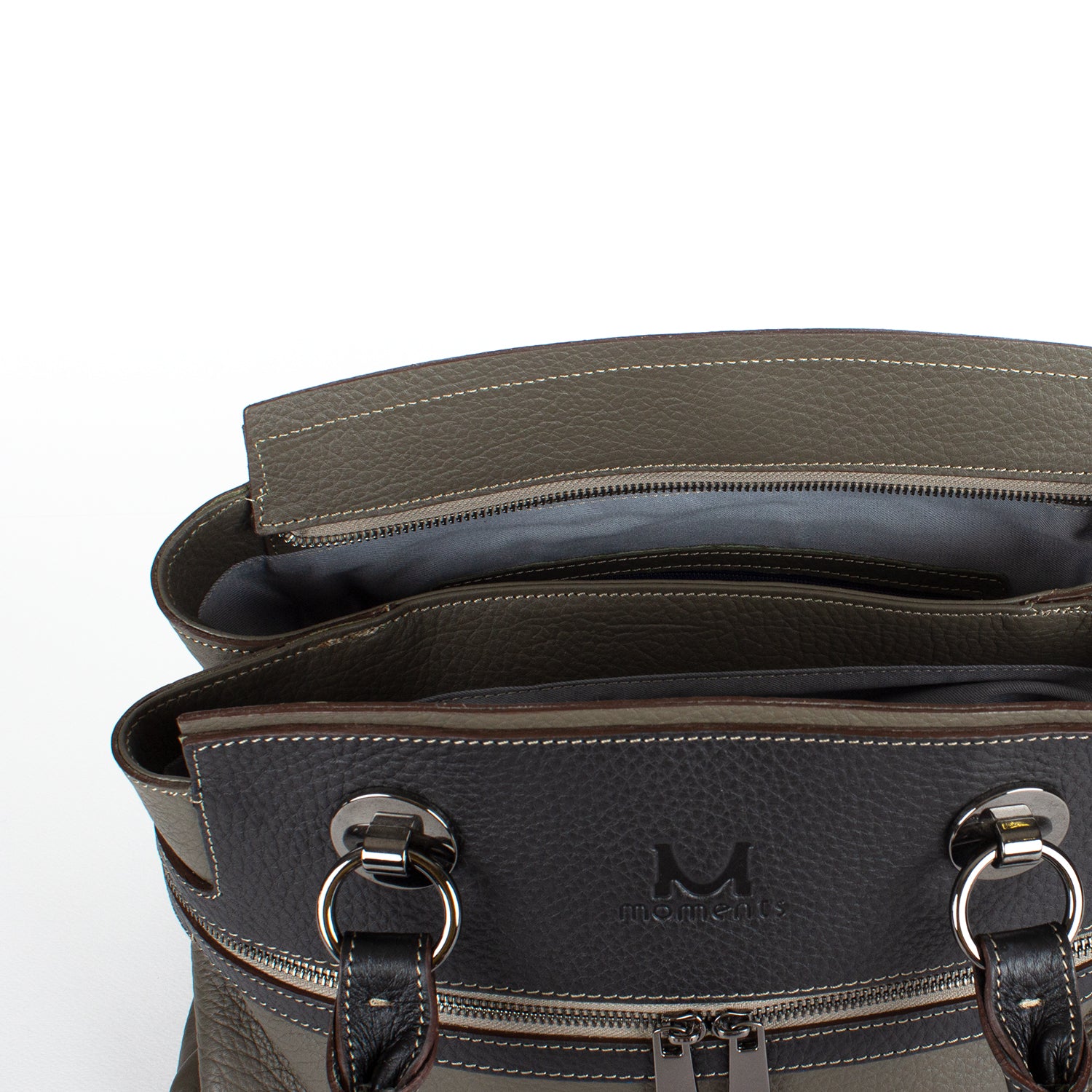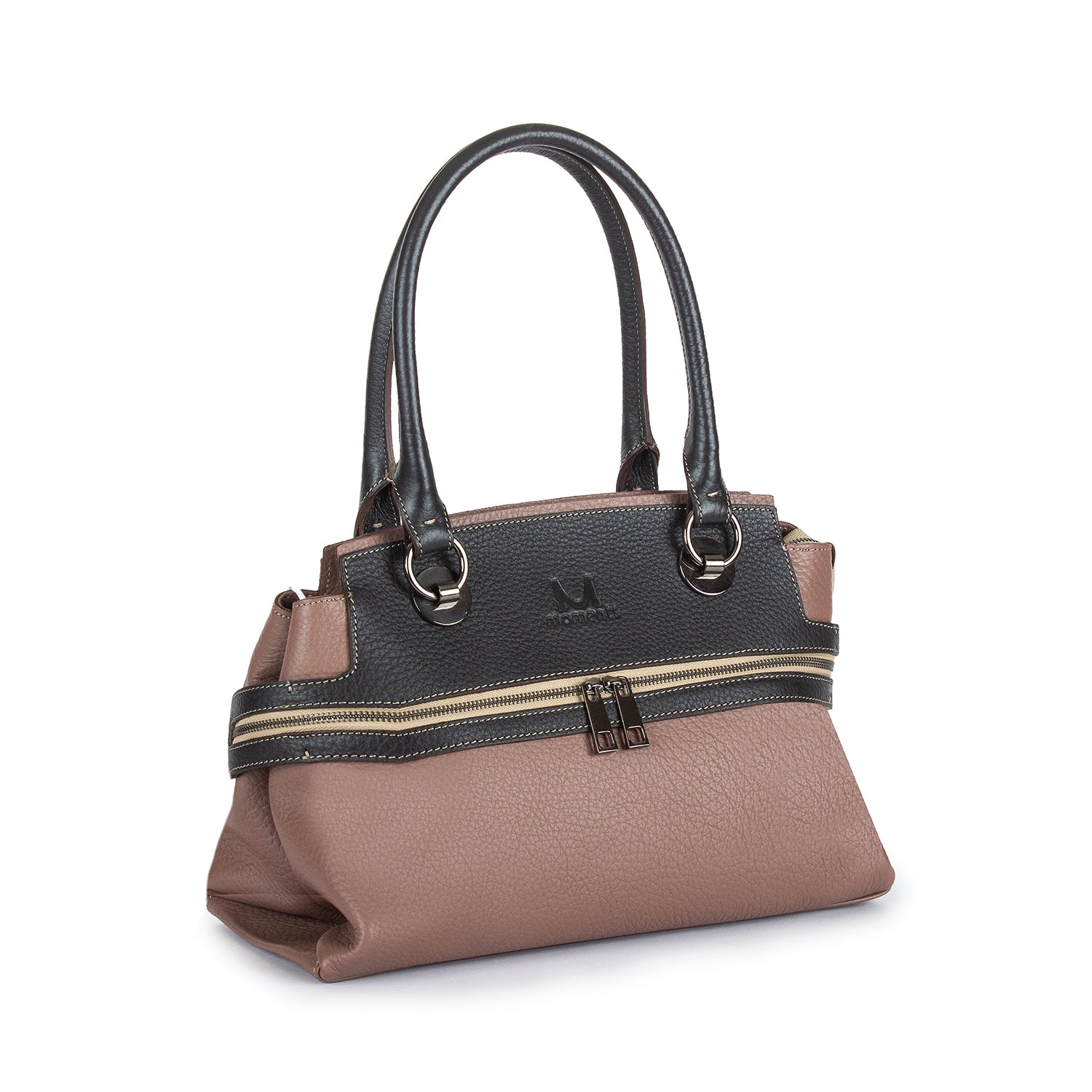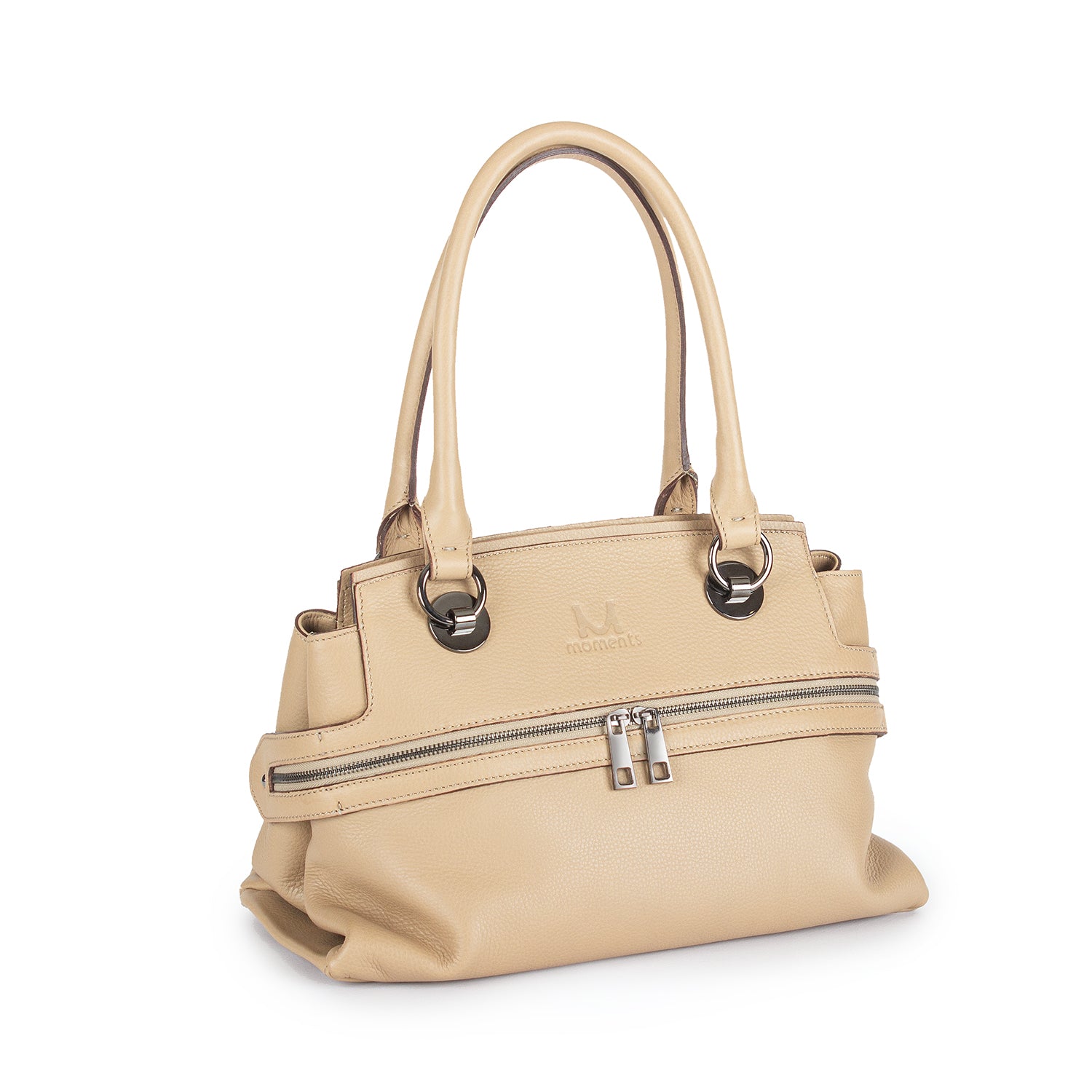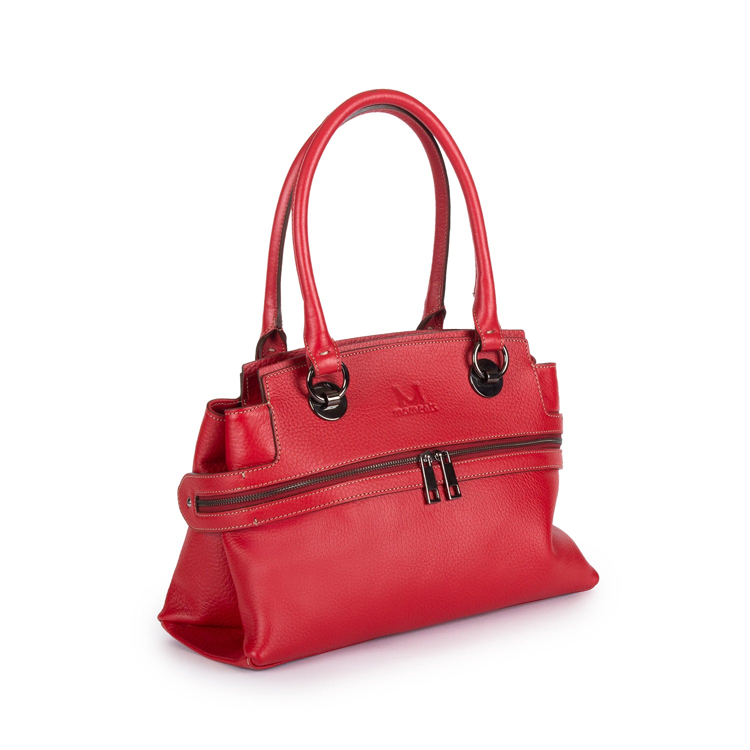 2747 Double-handle Leather Tote with Front Zip